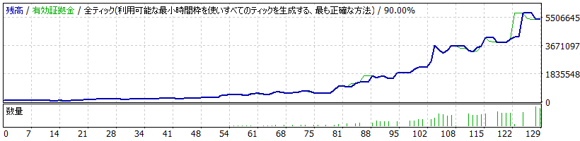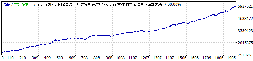 ・複利運用 : Risk=6.0(1取引の損失が証拠金の6.0%に収まるようロット数が自動計算されます(※急激な価格変動時には1取引の損失がRisk%を超える場合があります)。