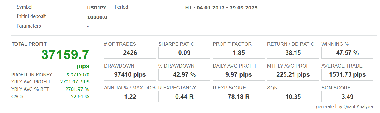 20012年から2025年9月のバックテストでは、平均年利 95.02 % を達成。