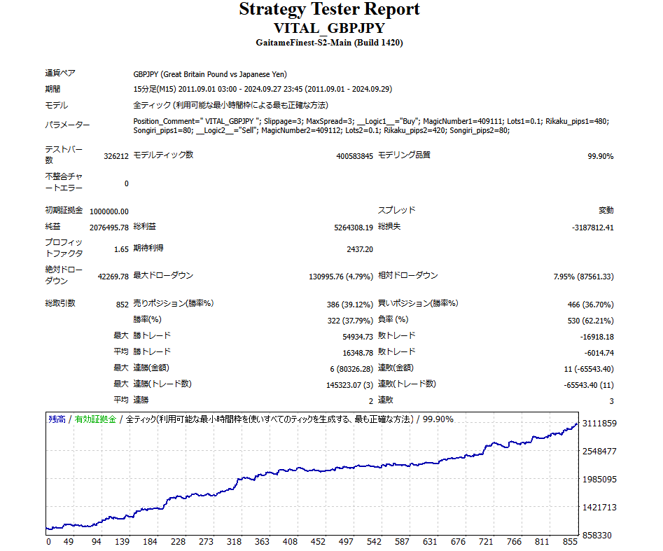 Increasing the lot size forcibly due to a high winning rate can, in rare instances, depending on the EA, lead to substantial Pips loss when a loss occurs. It is crucial to verify the SL Pips and the number of positions held before operating with an appropriate lot.