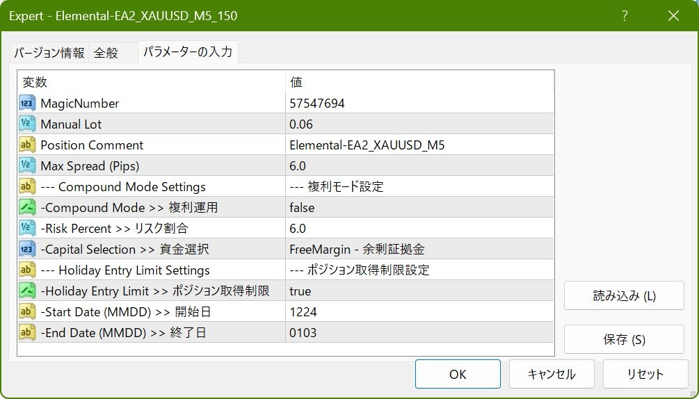 Elemental-EA2 は、ゴールドの特性を活かしながら損失を抑えつつ、利益を伸ばすことを目標に開発されたEAです。