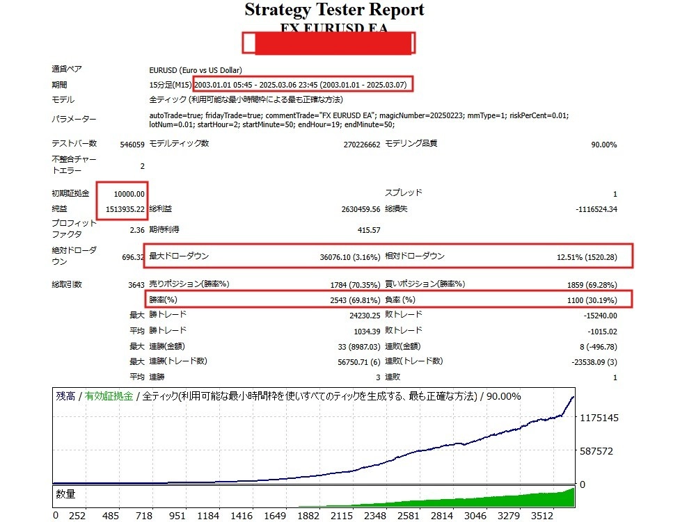 - 2003年から2025年までのバックテスト。1取引あた1%のリスク - デフォルト設定。