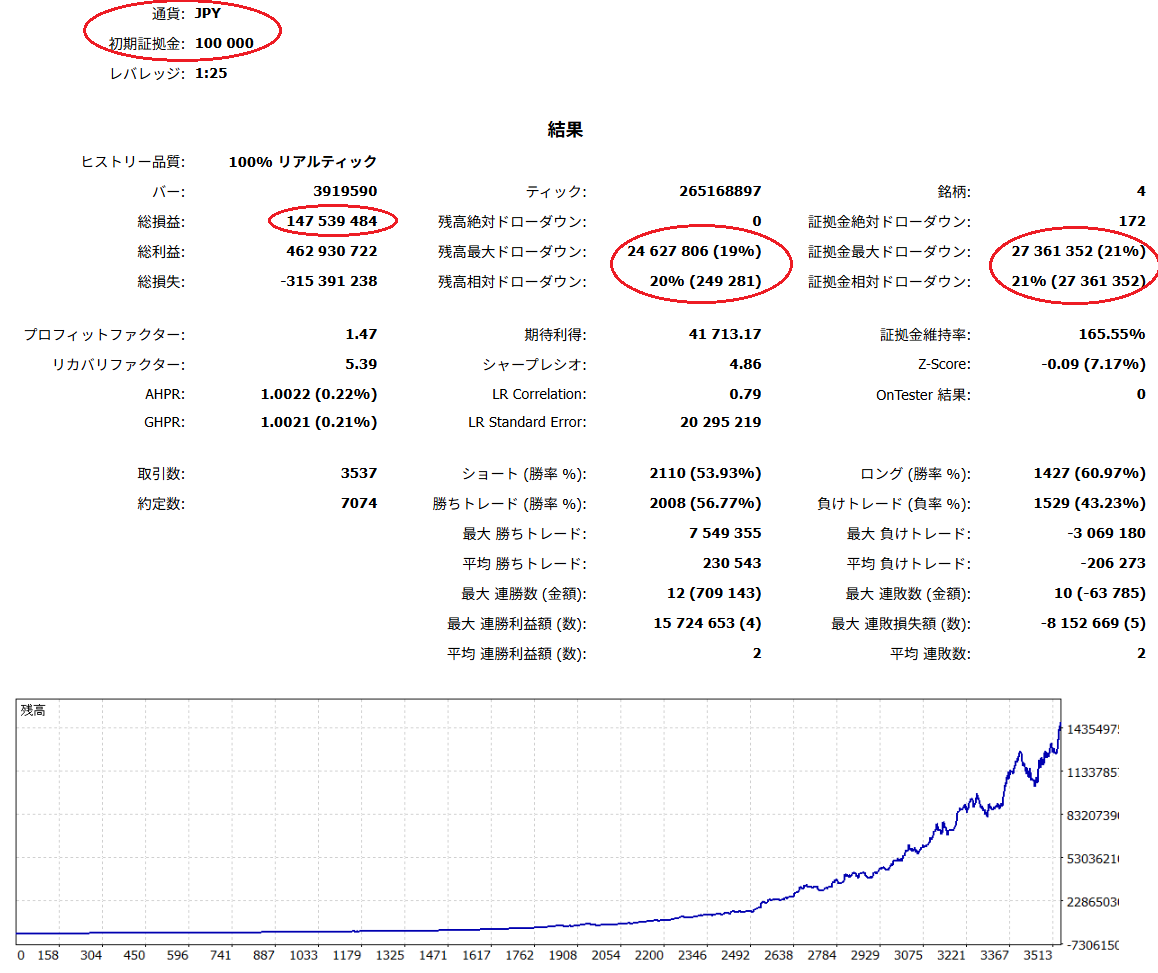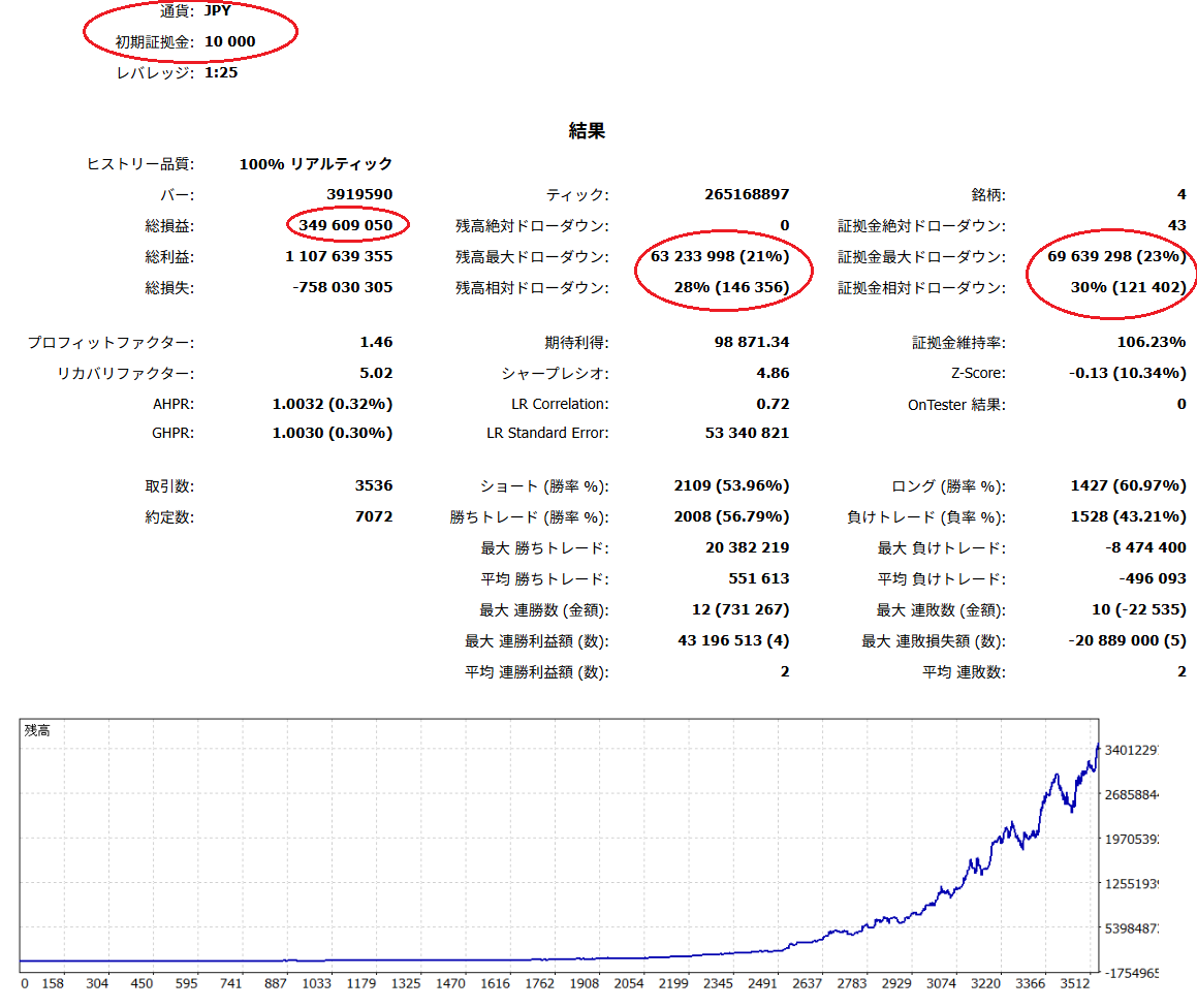 Increasing the lot size forcibly due to a high winning rate can, in rare instances, depending on the EA, lead to substantial Pips loss when a loss occurs. It is crucial to verify the SL Pips and the number of positions held before operating with an appropriate lot.
