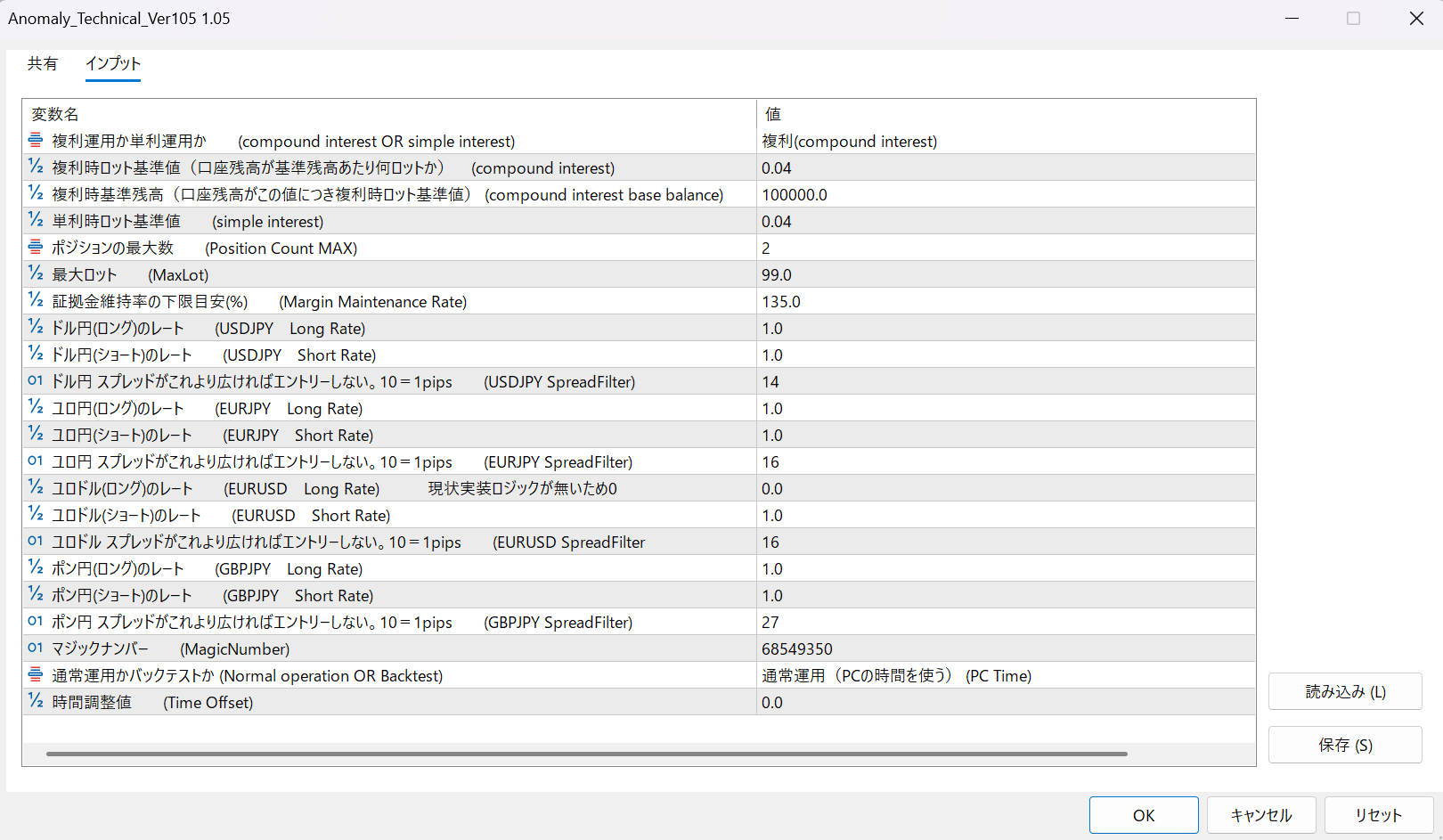 「複利時ロット基準値」の設定を調整することで