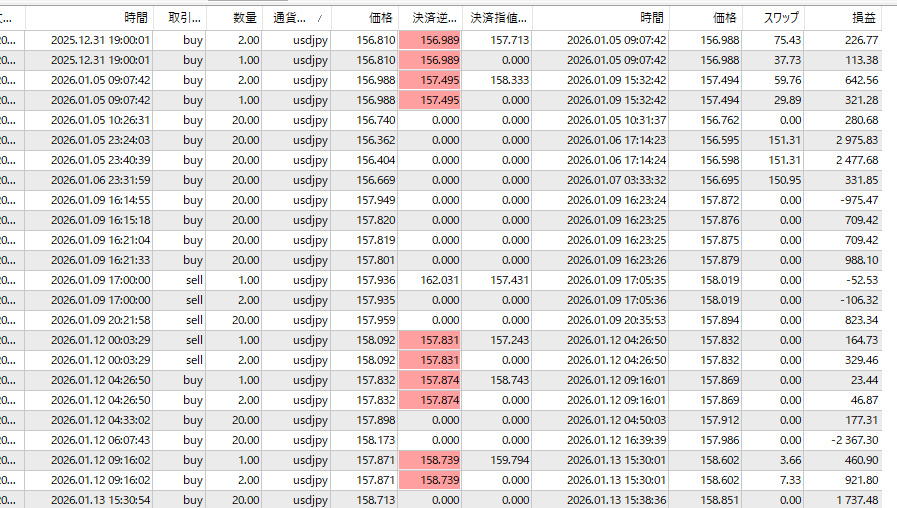 Increasing the lot size forcibly due to a high winning rate can, in rare instances, depending on the EA, lead to substantial Pips loss when a loss occurs. It is crucial to verify the SL Pips and the number of positions held before operating with an appropriate lot.