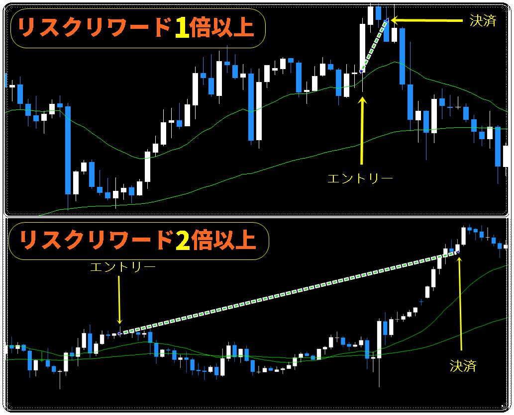 ・利益拡大が見込める場面ではリスクリワード2倍以上を目標に利益を大きく狙って利益追従。