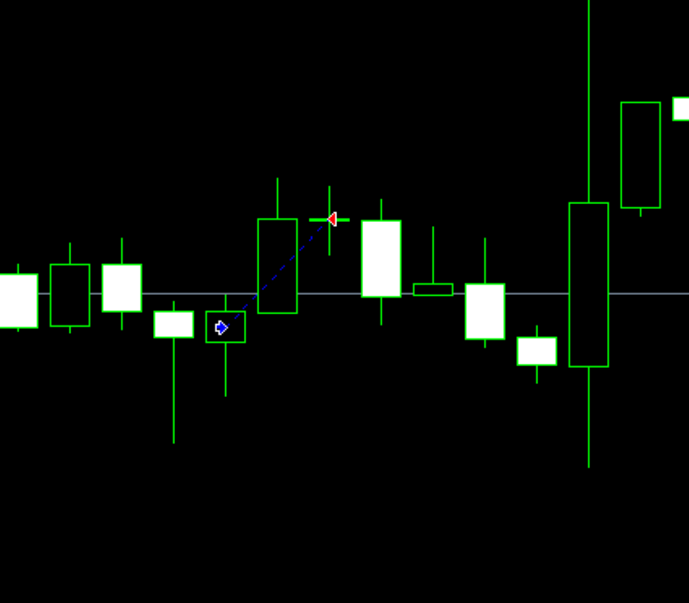 損切り条件:一定以上の逆行リスクが発生した場合には、資金を守るために次のローソク足の始値で一括損切りします。