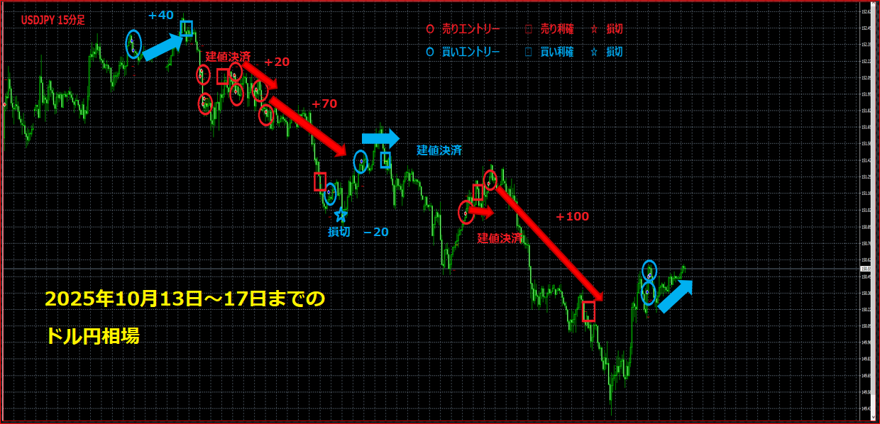 直近の2025年10月13日から17日までのドル円相場での結果は以下のとおり。