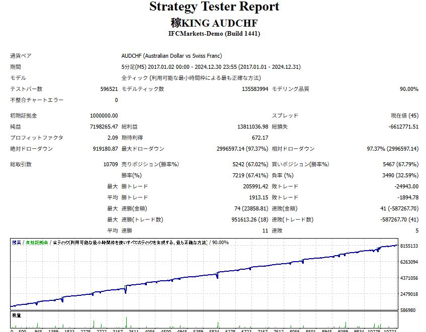 稼KING AUDCHF は長期的に大きな利益を上げる為に特化したEAになっております。