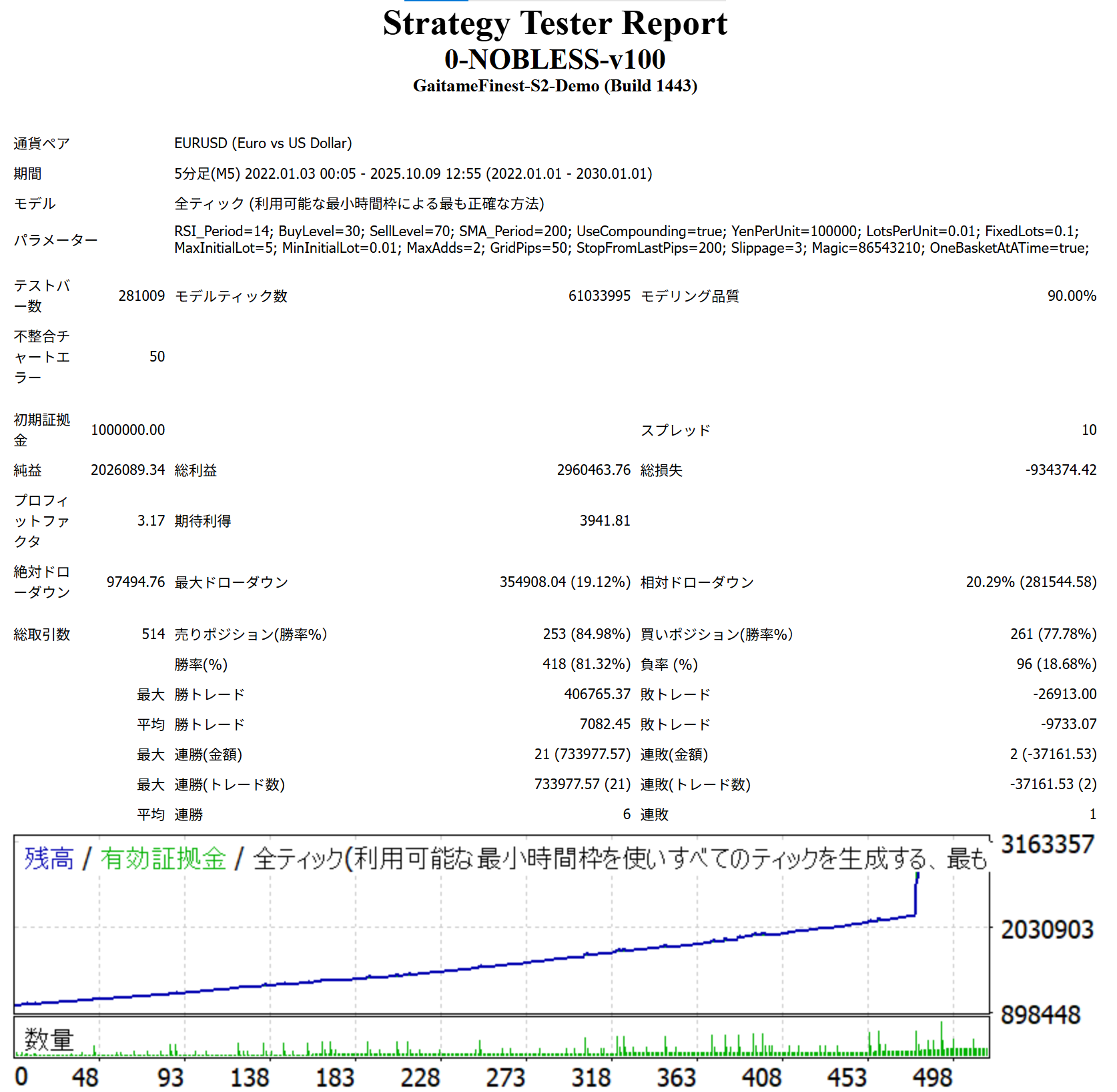 Increasing the lot size forcibly due to a high winning rate can, in rare instances, depending on the EA, lead to substantial Pips loss when a loss occurs. It is crucial to verify the SL Pips and the number of positions held before operating with an appropriate lot.