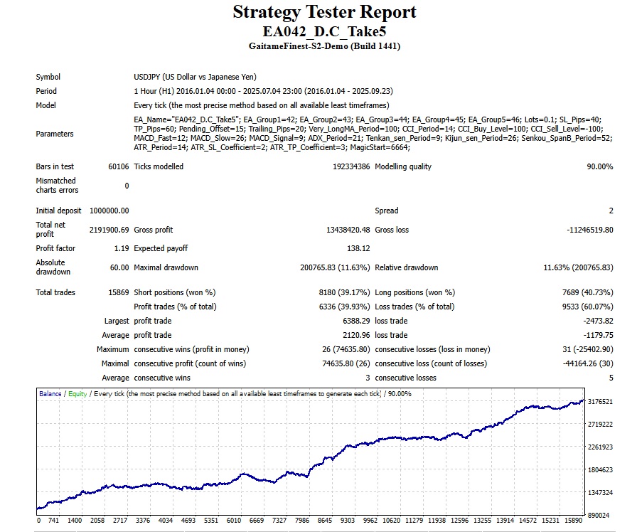Increasing the lot size forcibly due to a high winning rate can, in rare instances, depending on the EA, lead to substantial Pips loss when a loss occurs. It is crucial to verify the SL Pips and the number of positions held before operating with an appropriate lot.