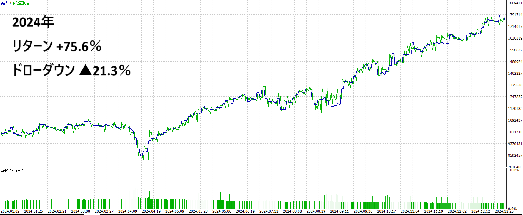 2024年:リターン+75.6% ドローダウン▲21.3%