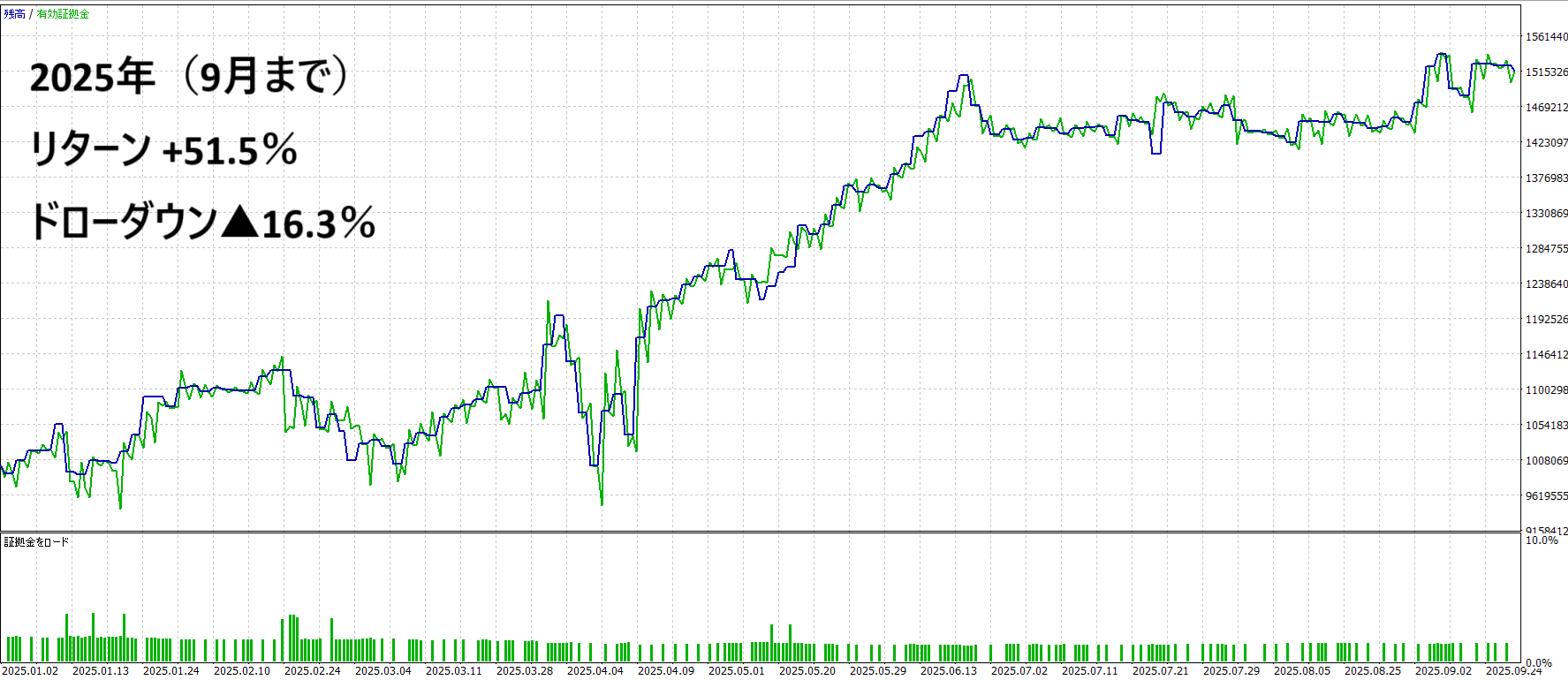 2025年9月まで:リターン +51.5% ドローダウン▲16.3%