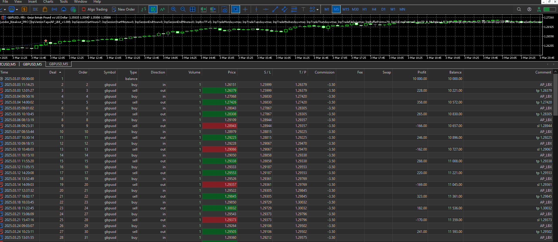 There is an absence of self-serving rule modifications, a common human tendency, such as increasing the lot size after consecutive losses in discretionary trading or, conversely, hastily securing profits with minimal gains.