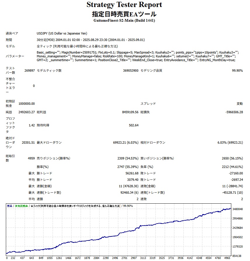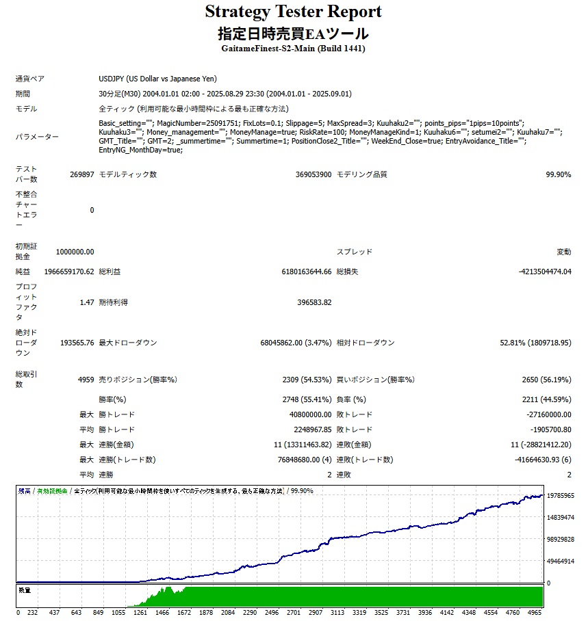 Increasing the lot size forcibly due to a high winning rate can, in rare instances, depending on the EA, lead to substantial Pips loss when a loss occurs. It is crucial to verify the SL Pips and the number of positions held before operating with an appropriate lot.