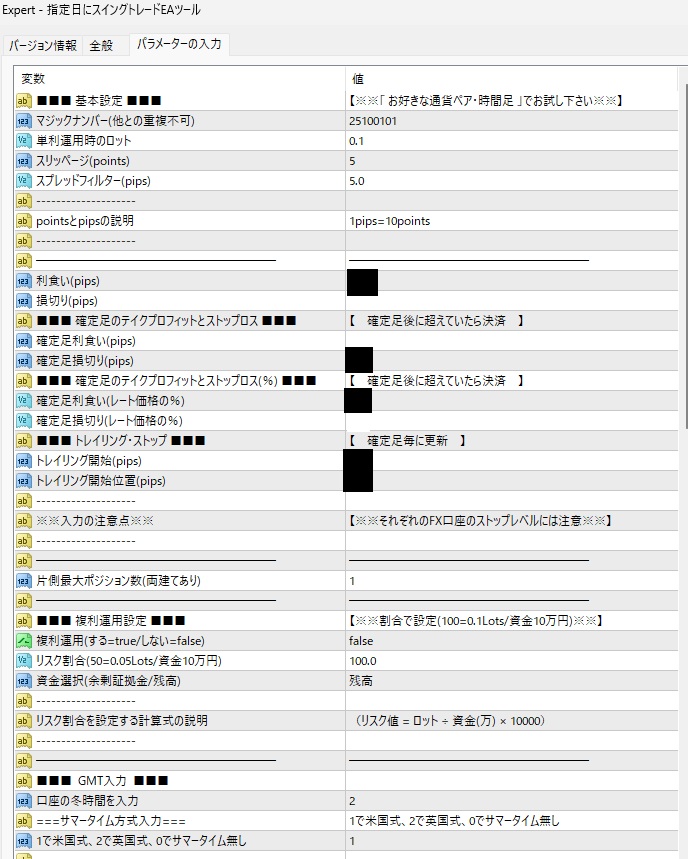 ※スイングトレードなので「週末クローズのデフォルトはFalse」にしております。
