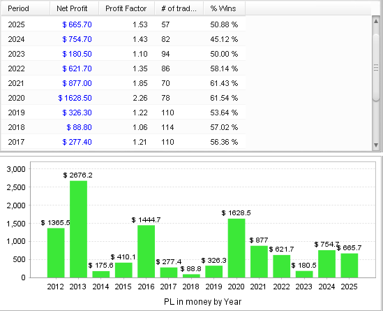 13年間のバックテストで、年単位での収支すべてプラス収益を実現しております。