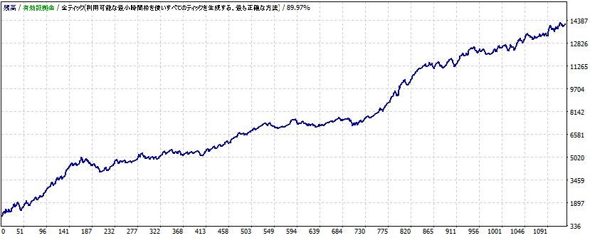 0.1ロット固定(1万通貨)での取引で、1000ドル → 14144.80ドル(14.1倍に!)