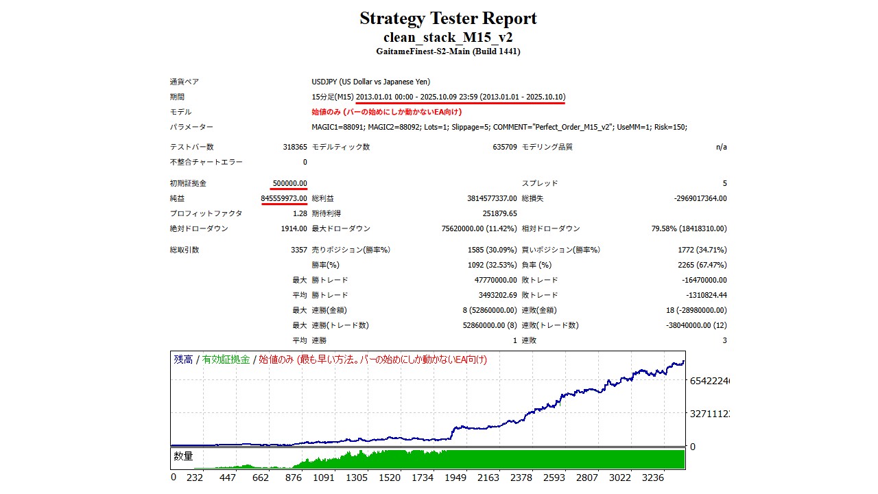 裁量トレードで負けが続き、ロットを大きくしてみたり、逆に少ない利益ですぐに利確してしまうといった、人間にありがちなルールの自己都合化がありません。