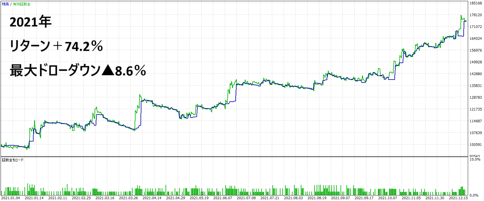 2021年:リターン+74.2% ドローダウン▲8.6%