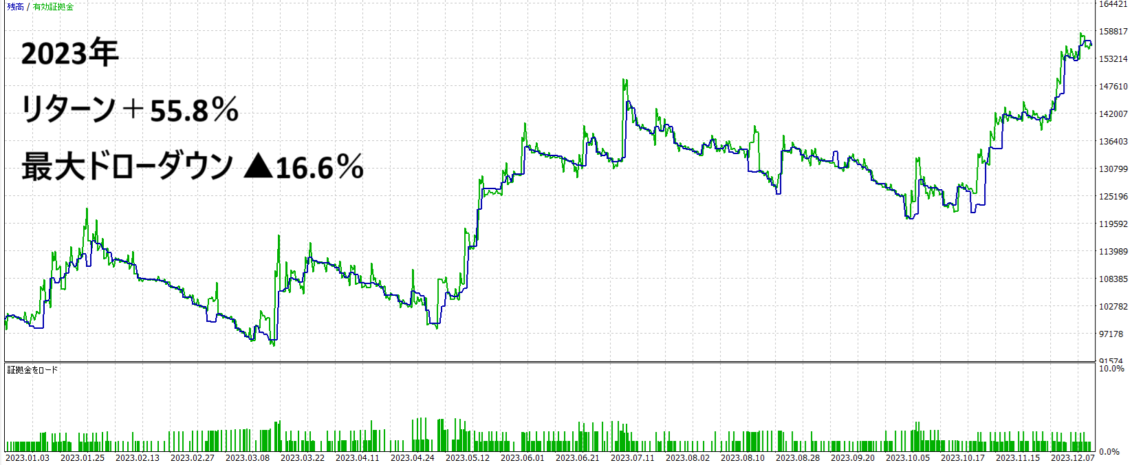 2023年:リターン+55.8% ドローダウン▲16.6%