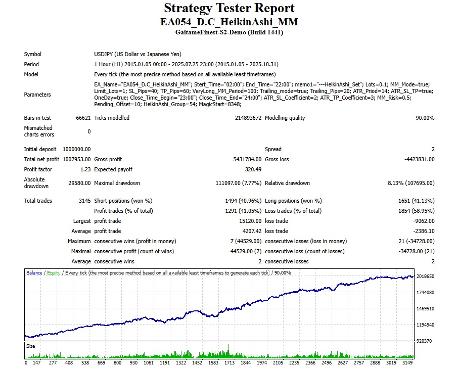There is an absence of self-serving rule modifications, a common human tendency, such as increasing the lot size after consecutive losses in discretionary trading or, conversely, hastily securing profits with minimal gains.
