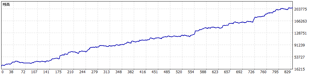 | 約定数: | 1676 | 勝ちトレード (勝率 %): | 418 (49.88%) | 負けトレード (負率 %): | 420 (50.12%) | |||||||