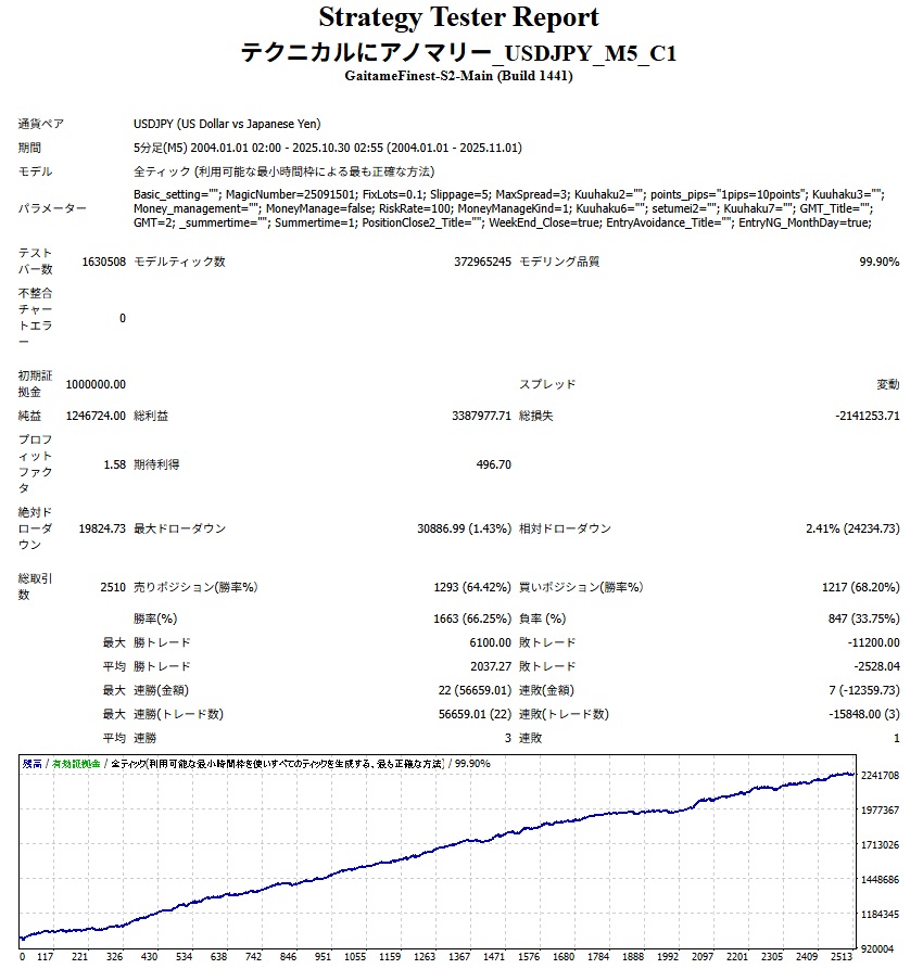 Increasing the lot size forcibly due to a high winning rate can, in rare instances, depending on the EA, lead to substantial Pips loss when a loss occurs. It is crucial to verify the SL Pips and the number of positions held before operating with an appropriate lot.