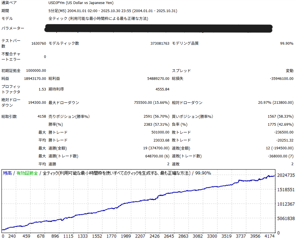 ・SL(Stop Loss):EAの設定上の最大損失pips(または指定された金額など)