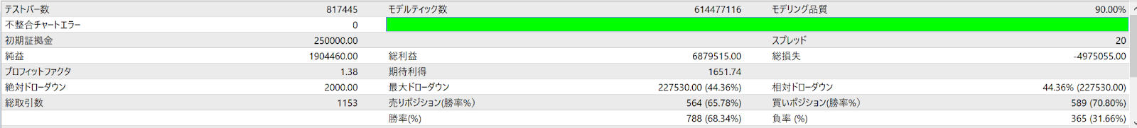 (1ロット=10万通貨設定=このバックテストでの2.1は21万通貨ということ)