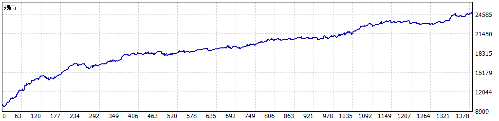 | 総取引数 | 1398 | 売りポジション(勝率%) | 333 (68.17%) | 買いポジション(勝率%) | 1065 (67.89%) |