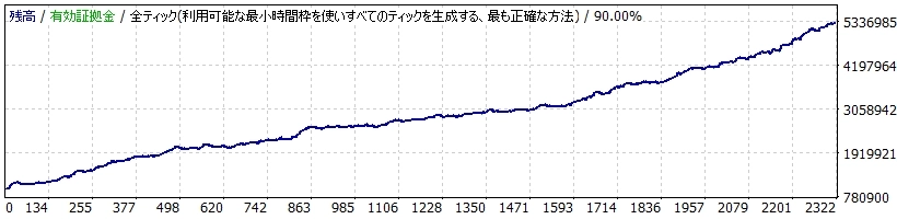 こまめな利益確定によりドローダウンを抑制し、資産曲線の安定性向上に寄与します。