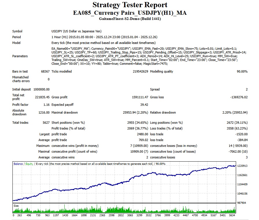 EA仕様書:EA085_Currency_Pairs_USDJPY(H1)_MA