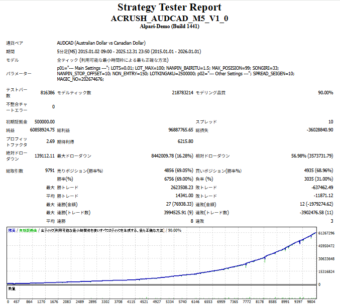 ※ 過去データによる検証結果であり、将来の利益を保証するものではありません。 EAの特性を把握するための参考情報です。