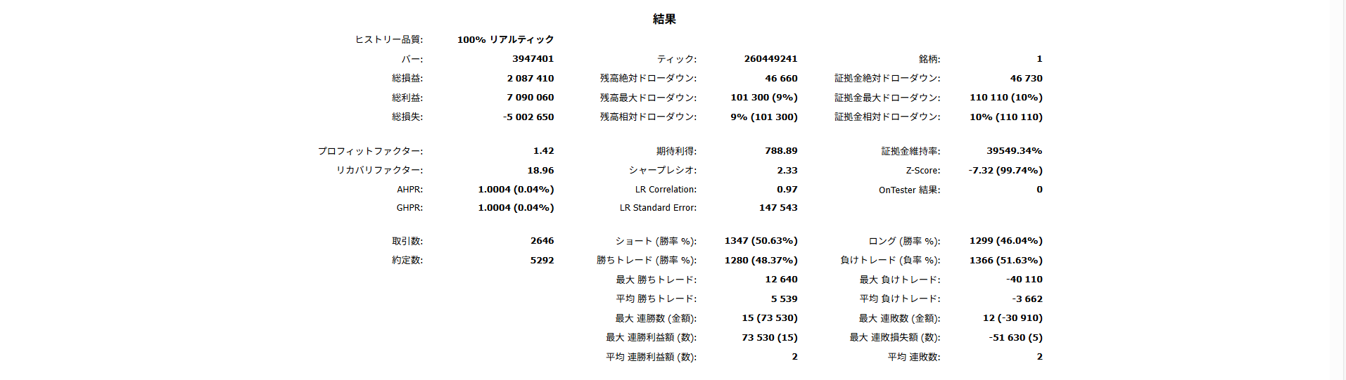 2015.01.01 ~ 2022.01.01 までバックテスト期間