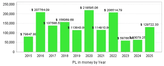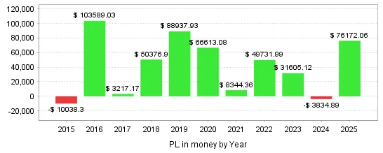 BT期間:2015.1.1~2025.12.31 純益:464,714円 (0.1lot) 最大DD:87,949円 (0.1lot) RF :5.28 期待利得:498.09円(0.1lot)