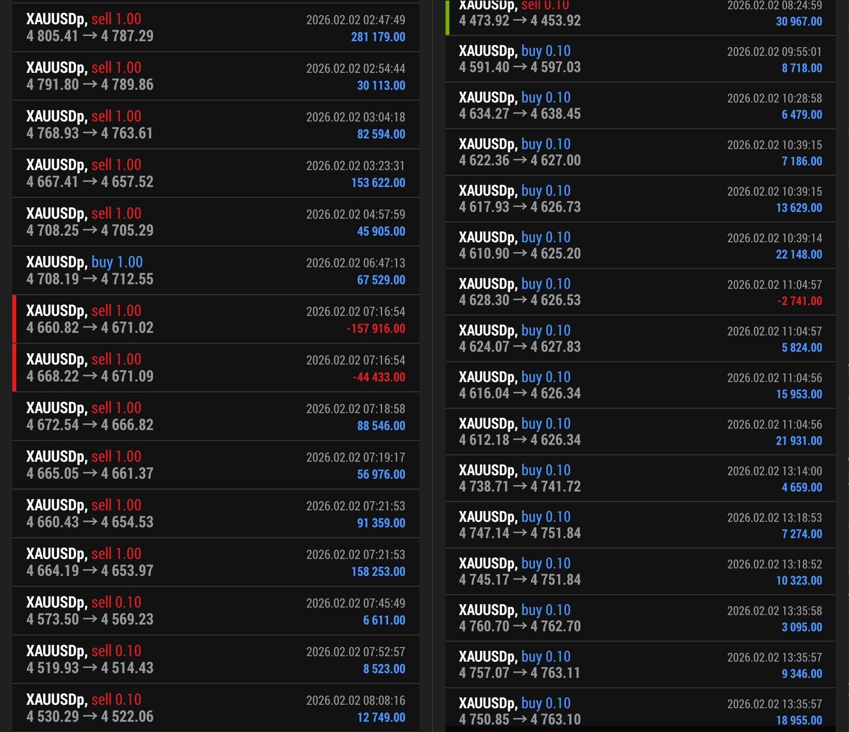 同時に保有して同時に決済して2800万円の利益確定直前の画像です。