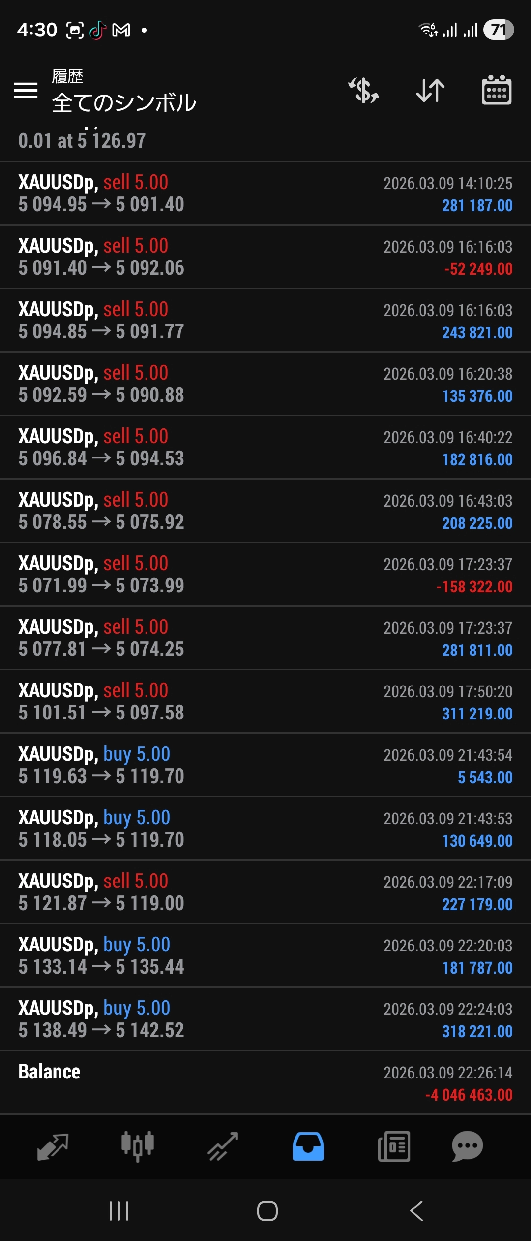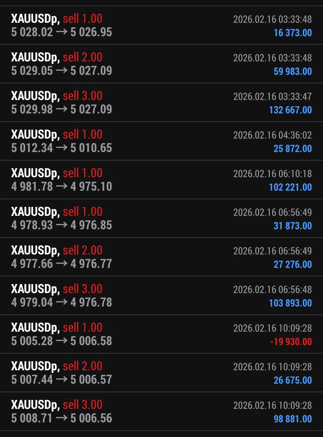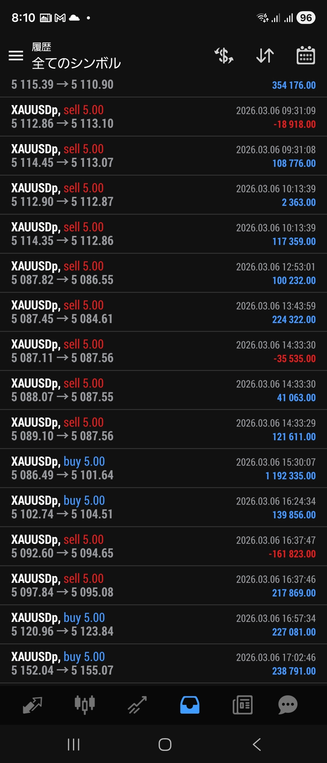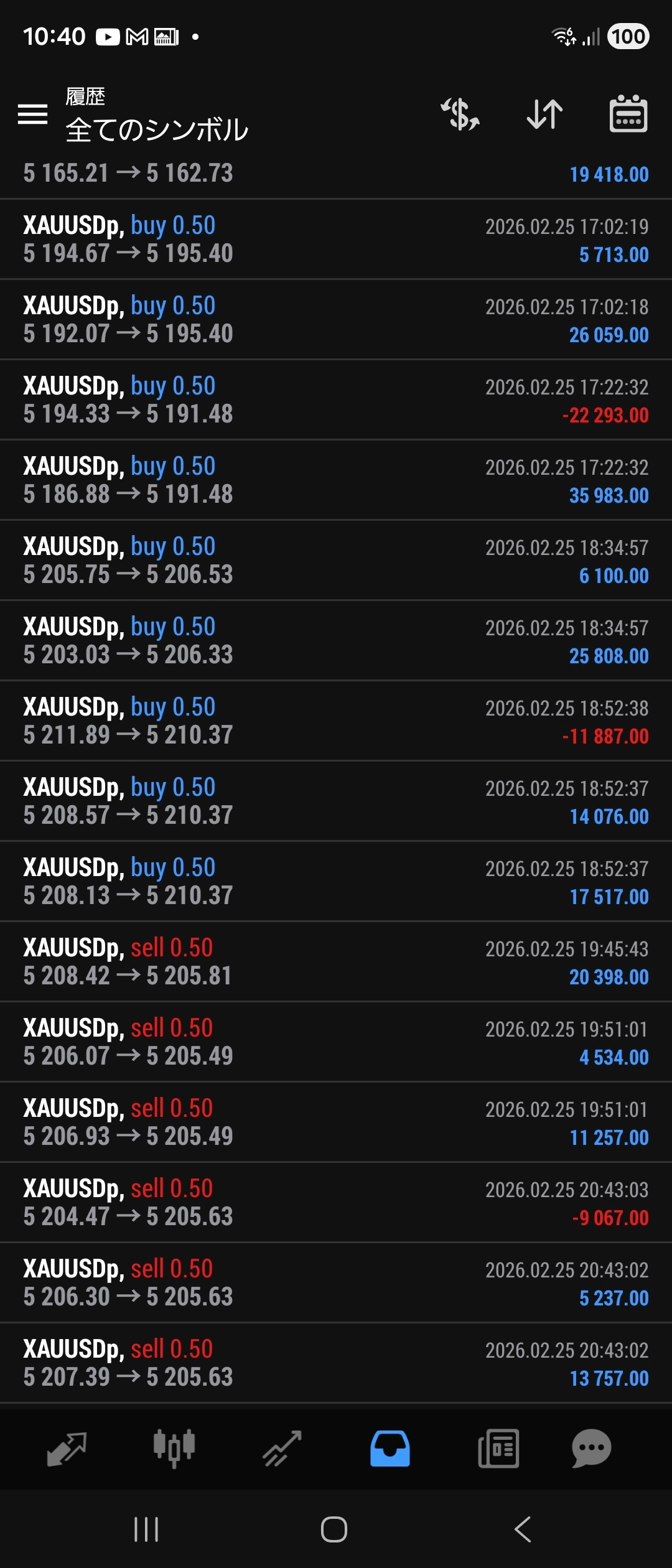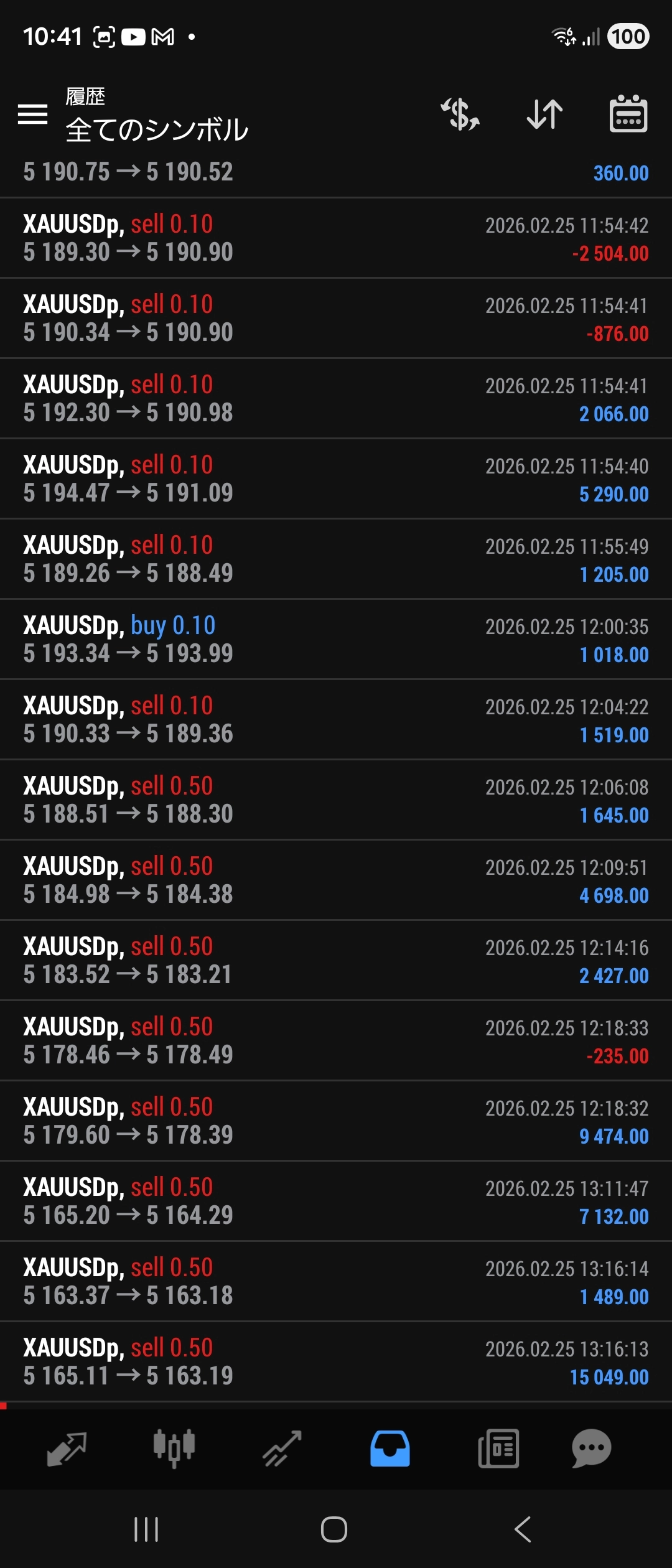 2月13日ゴールド 3,217,690円出金 EAを回しながら、裁量トレードしています。