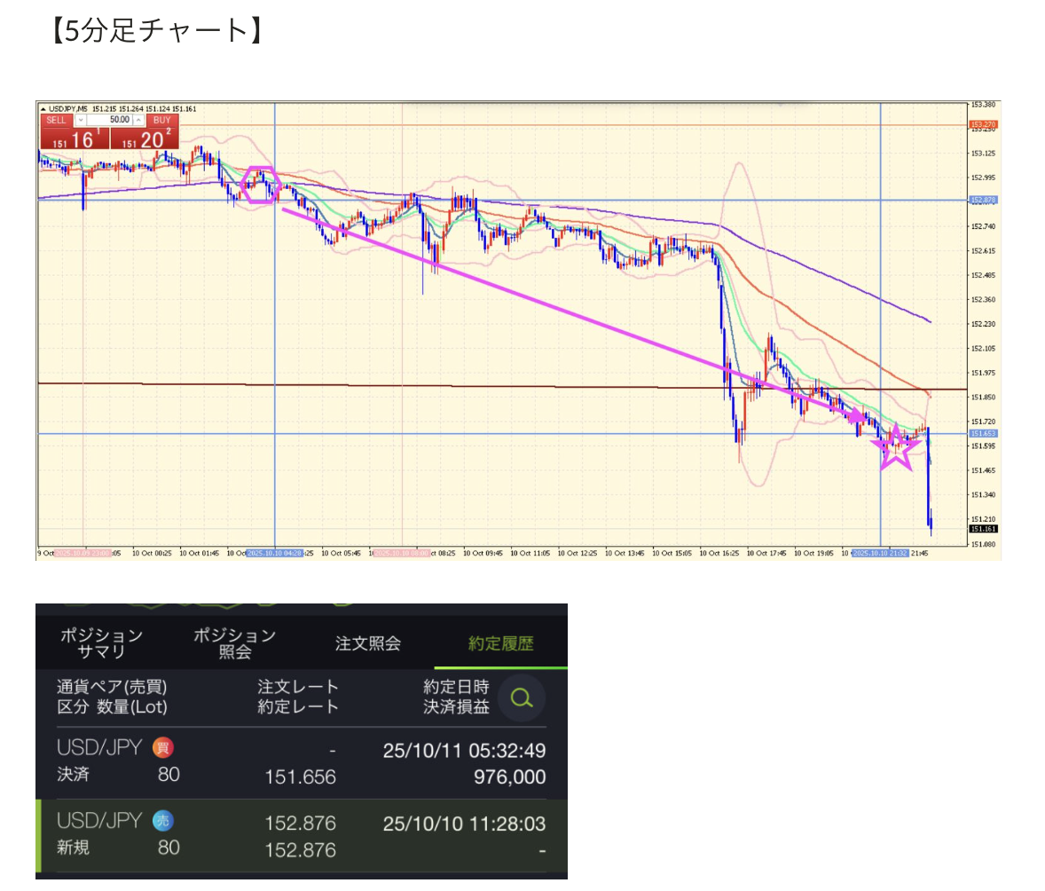直近2025年10月のトレード履歴は
