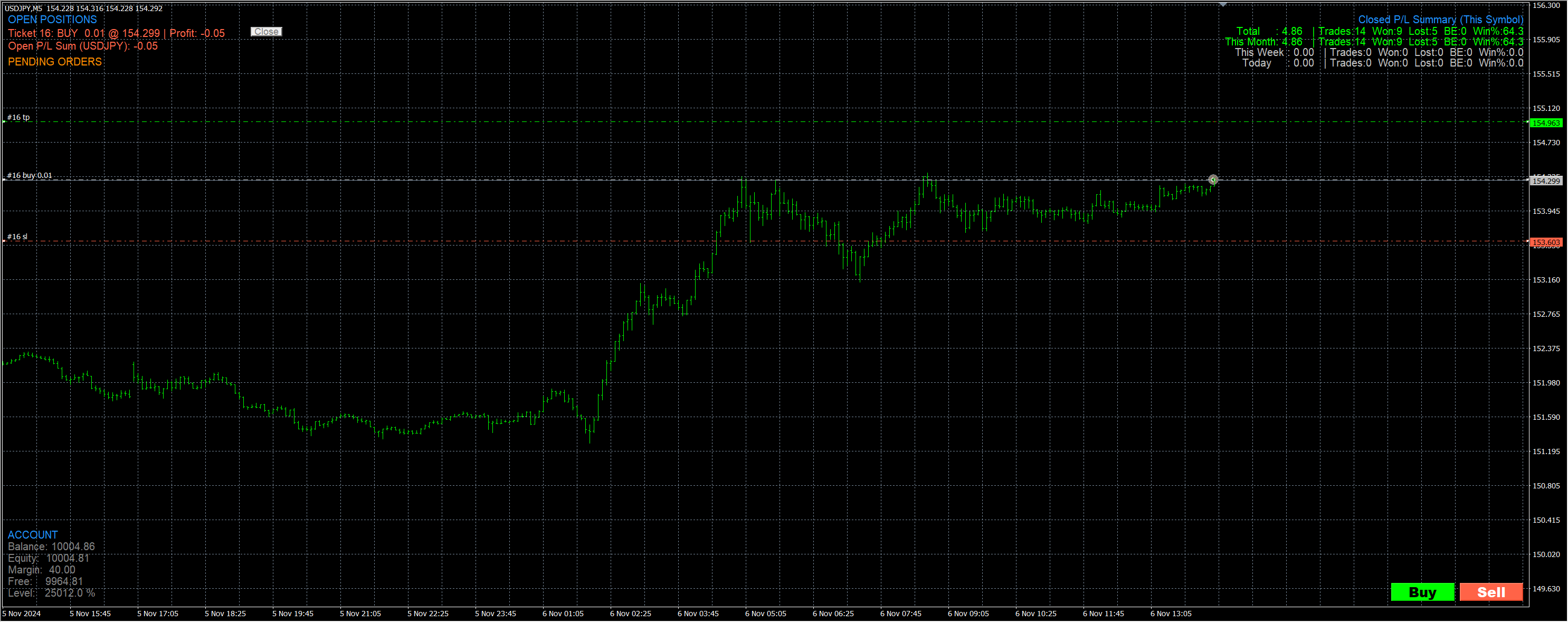 • 直感操作:チャート上のボタンとライン操作だけで、成行・指値/逆指値・TP/SL の作成・変更・取消が可能。