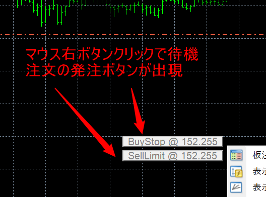 • 待機:チャートを 右クリック → 表示された Limit / Stop ボタンで即配置