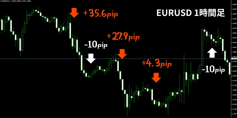 特徴② 1時間足を使用、全通貨対応