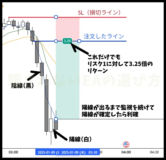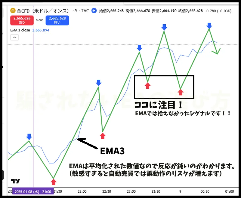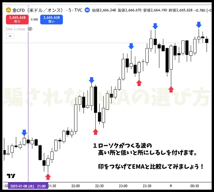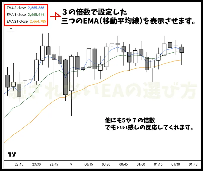 1つめの手法(EMA)は三本のEMAを使った初心者でも再現しやすいものです。