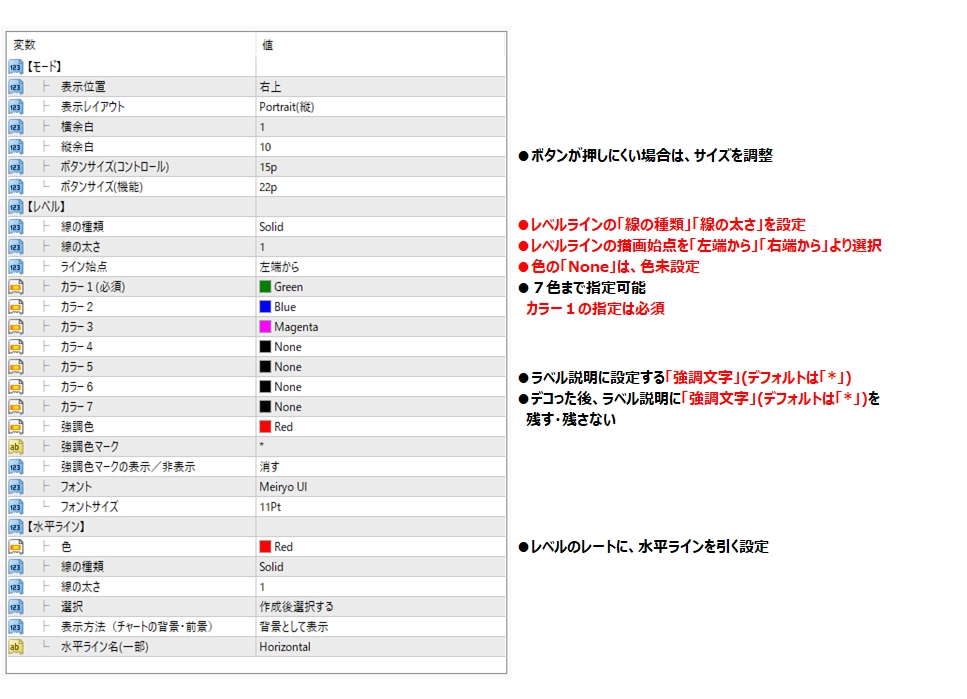 レベルラインの設定追加