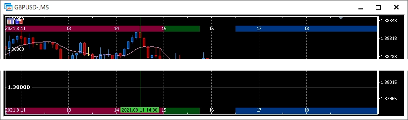 • 最下段のサブウィンドウに日本時間を表示する – 表示位置に Bottom を選んだ場合、旧バージョンではメインウィンドウ下部に表示していた日本時間を最下段のサブウィンドウ下部に表示できます。false にすればこれまで同様メインウィンドウに表示されます。