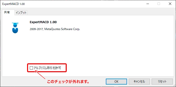 これは MT4 / 5 の仕様ですので、EA を適用したチャートでこの機能を使用した後は EA の以下のチェックを必ず戻してくださいEA が稼働しているチャートではこの機能を使わないのが一番の対策です。