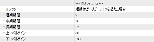 短期RCI、中期RCI、長期RCIの期間や条件などもパラメーターより指定できます。