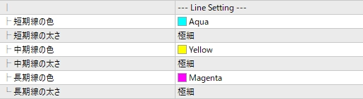 トリガーラインとなる上下レベルラインの数値も設定可能です。
