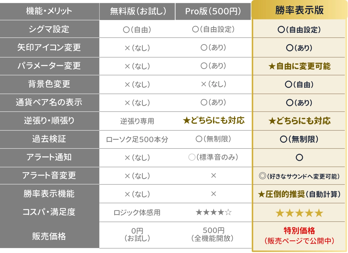 • 無料版はMT4標準のポップアップアラートのみ対応しています。サインやアラートなどの詳細なカスタマイズをご希望の場合は上位版をご利用ください。