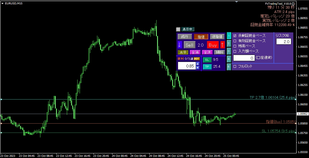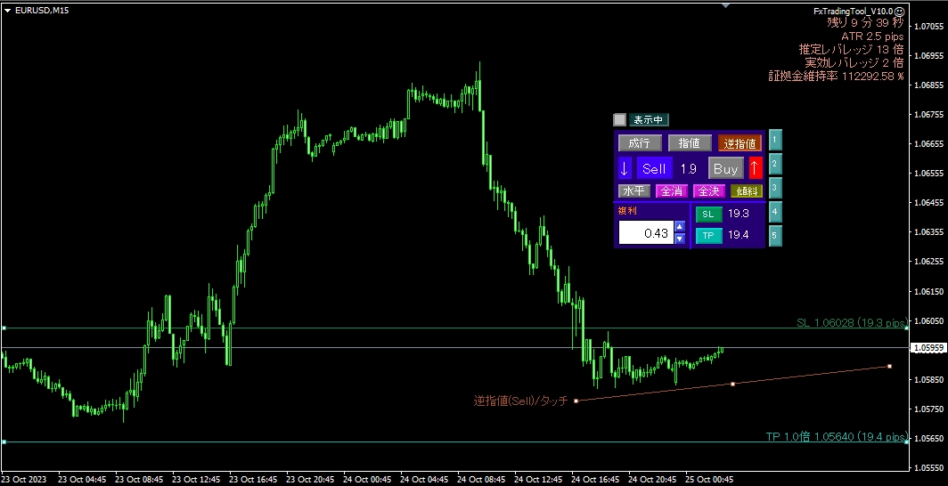 - 損切および利確ラインを指定の報酬比率(リスク・リワード・レシオ)になるよう自動で配置させることもできます。