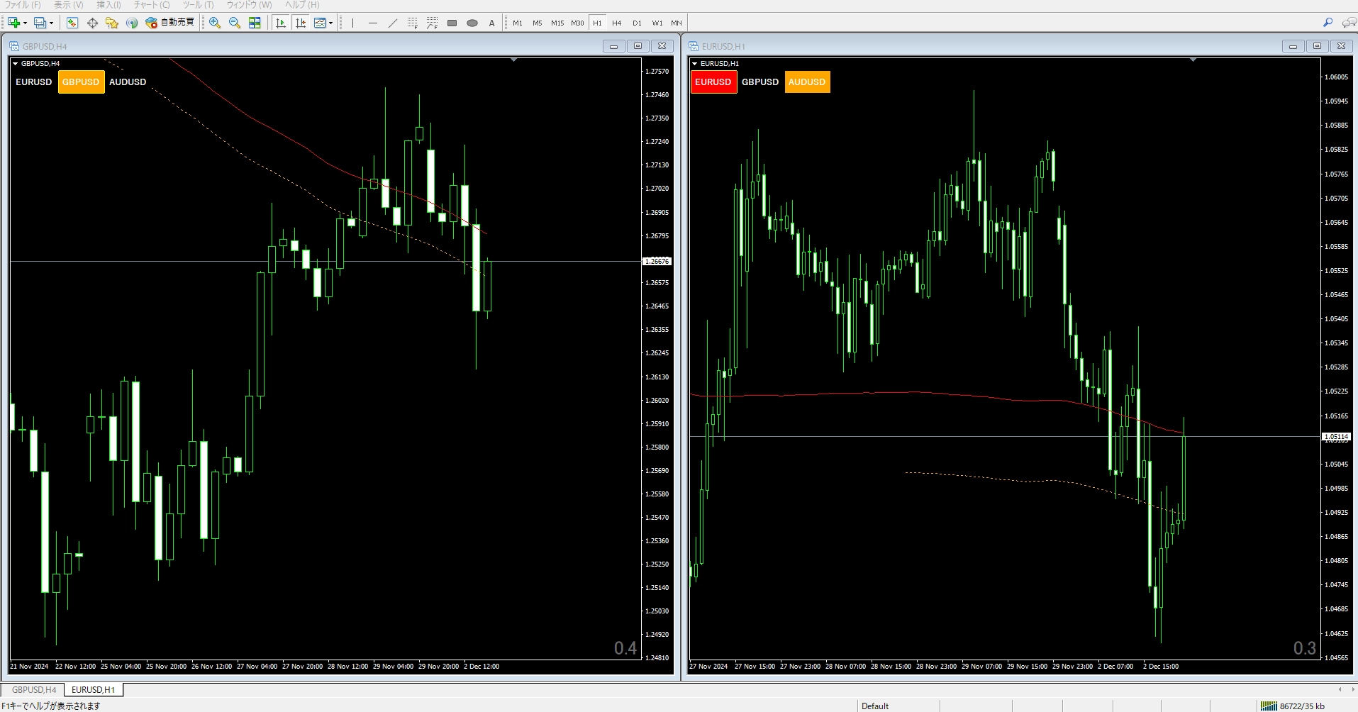 ※MT4の初期状態であれば問題ありません。